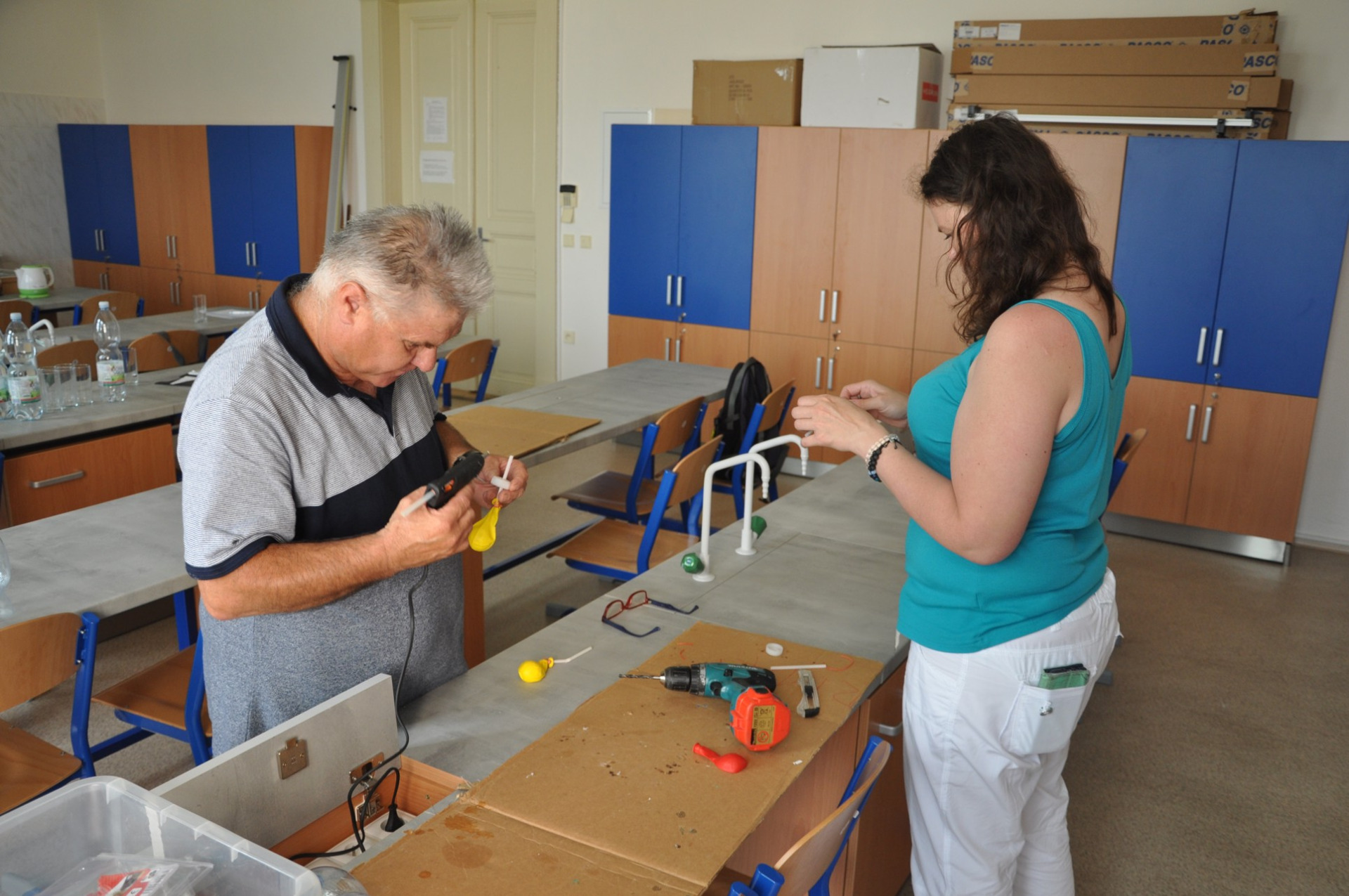 a upravené sklenice. K vývěvám si účastníci vyrobili i jednoduchý funkční